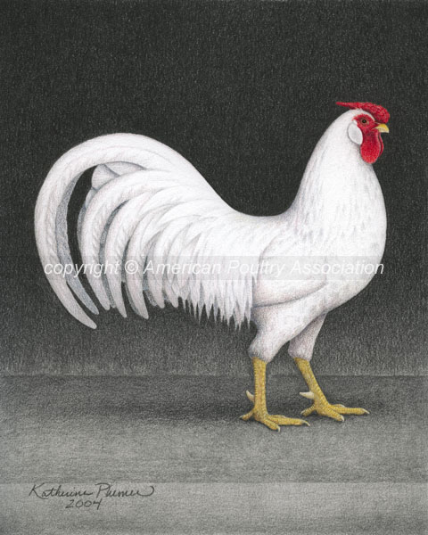 TITLE: "Bantam Rose Comb White Leghorns" DATE: 2004, © American Poultry Association SIZE: 8 by 10 inches each MEDIUM: colored pencil, graphite, and ink; on white Rising Stonehenge paper PRICE: sold, collection of B.Hudson, Illinois, USA