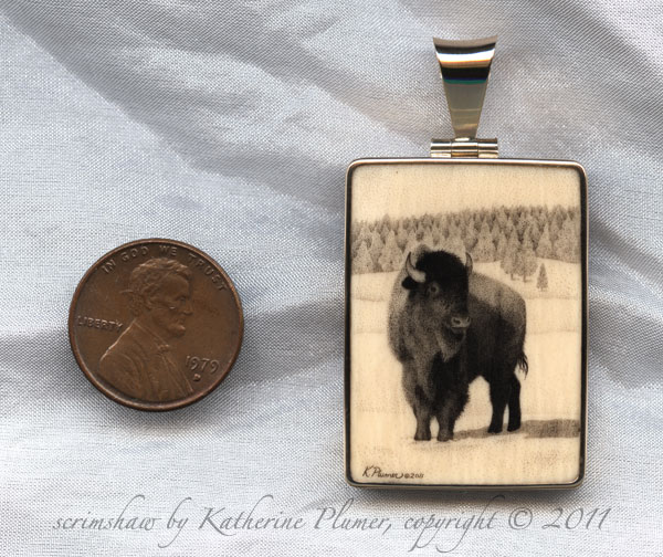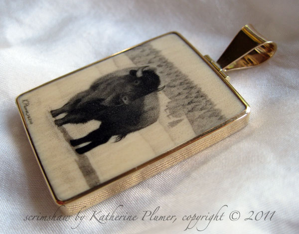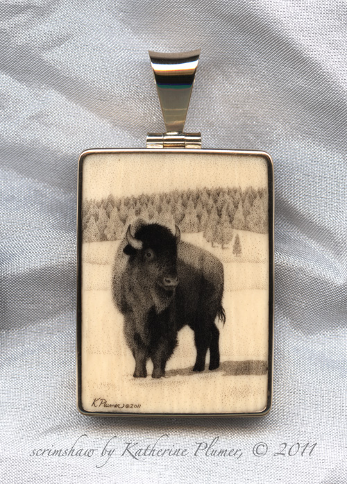 TITLE: Bison in Snow pendant This piece was commissioned as a gift for someone who saw my work at the 2010 Western Visions show at the National Museum of Wildlife Art in Jackson Hole, WY.
