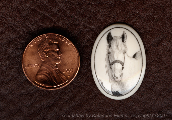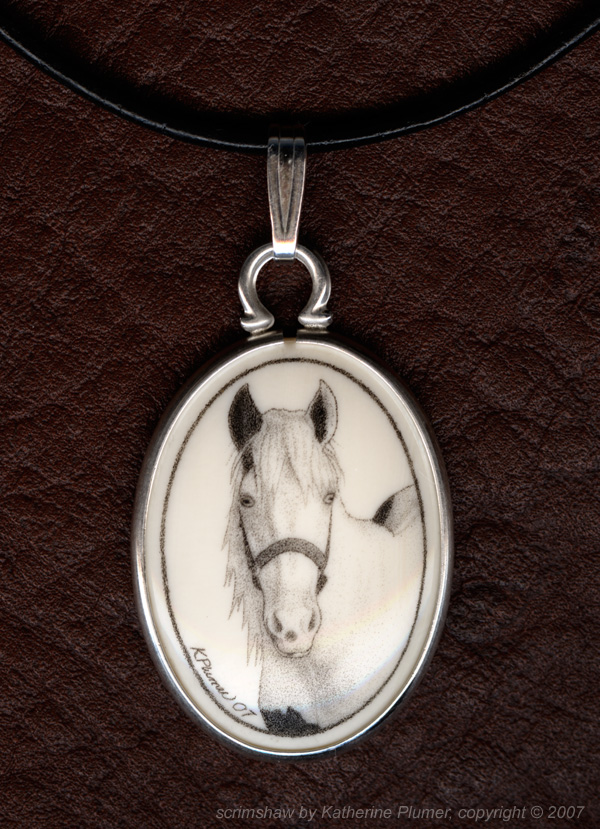 TITLE: "Aragorn" pendant DATE: © 2010 SIZE: 18 by 25 millimeters MEDIUM: scrimshaw engraving on pre-ban elephant ivory PRICE: sold, collection of J.Cadwell, California, USA (custom gift commission)